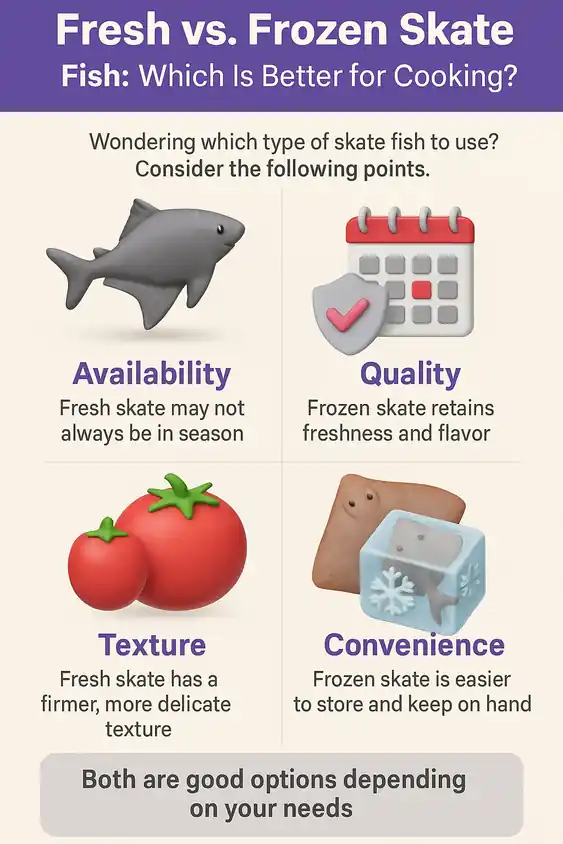 This guide breaks down the key differences between fresh and frozen skate fish using firsthand experience and practical insights. You’ll learn how each option affects taste, texture, price, storage, and cooking performance, and how to choose the version that works best for your cooking style, budget, and expectations. By the end, you’ll be able to confidently decide whether fresh or frozen skate is the better choice for your next meal.